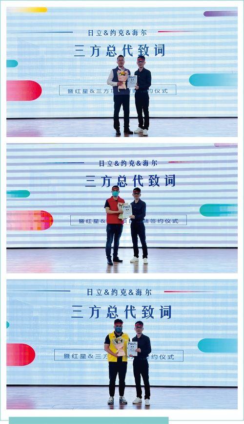 2022年5月26日,下午14:00,三位帅气的品牌代言人官宣形象照闪亮登场,日立、海尔、约克三方旗下各门店负责人齐聚椒江大桥红星美凯龙,共同见证这一空调行业大事件启幕。