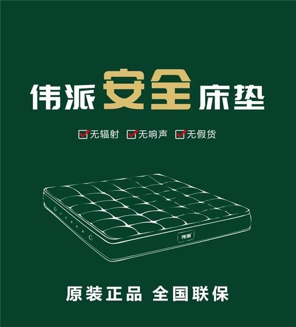 作为一家专业的安全床垫制造商,我们拥有着一流的科技管理团队,强大的营销团队以及完善的售后服务体系,帮助每一位用户找到属于自己的睡眠方式!全力以赴为每一位客户提供最高品质的服务!如果您正在为找不到适合家中孩子安心睡眠的安全床垫而烦恼,就选伟派安全床垫!如果您正在为找不到适合与爱人一同相拥而眠的安全床垫而烦恼,就选伟派安全床垫!如果您正在为找不到一款适合家中睡眠质量较差的长辈安然入眠的安全床垫而烦恼,就选伟派床垫!认准伟派,认准伟派安全床垫。请您放心将如何守护家人睡眠健康交给我们,我们将用专业的“伟派”服务让您和您的家人物有所值,物超所值!贴心的专业服务,让伟派,更气派!