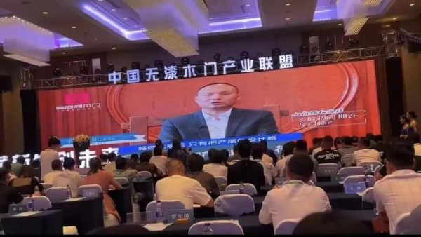 会议现场热闹非凡,多家媒体和众多木门品牌齐聚一堂,美欧利木门总经理范群伟应邀出席大会。