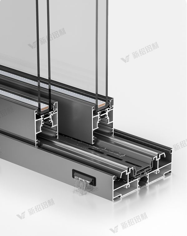 为保障整门的热工及水密性,轨道中央区域设置隔热槽有效降低整门K值,同时隔热槽形成双层过滤盖板,盖板设有条状排水孔,排水流畅的同时阻隔杂物进入避免排水孔堵塞。