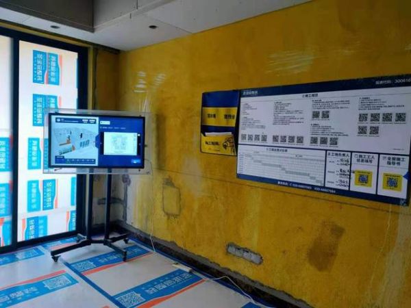 进入实装阶段,在每个装修现场会放置一个5g数字工地指挥屏,把试装工程方案输入到5G数字指挥屏,利用机器指挥人的方式,施工工人只要点击屏幕,便能查看到施工所有节点、施工图纸与三维模型。施工工人依据指令施工,全屋1:1放线,严格按图进行软硬装施工,确保施工标准,让每一个装修细节都能装得顺心。