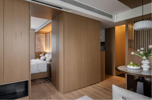 王玉洁的家简约又安逸。虽然是小户型,但功能布局、家居陈列从容优雅不拘谨,充沛的自然光从主卧、客厅、阳台照进室内,让木质色调的家具尽显温柔,使得室内的植被更加生机。此时进入屋内的你,只想伸一个大大的懒腰,然后盘坐在地板上冥想来释放一天的疲惫。这种小空间中的大舒适就是设计师所追求的。她对于舒适的理解既简单又深刻——不只是物理上的冷暖,还有对自己的关爱。