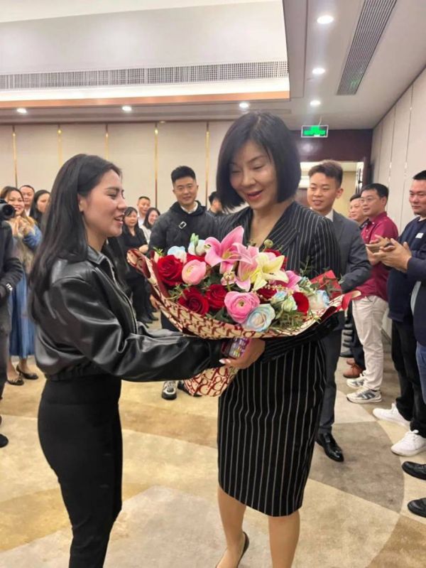 仪式伊始,固硕宝家人齐聚会场迎接陈红老师的到来。随即,陈红老师与固硕宝商学院院长陈冠鑫握手问好。 陈红老师以 优雅大方、亲和的态度 与 在场固硕宝家人进行了愉快的互动。