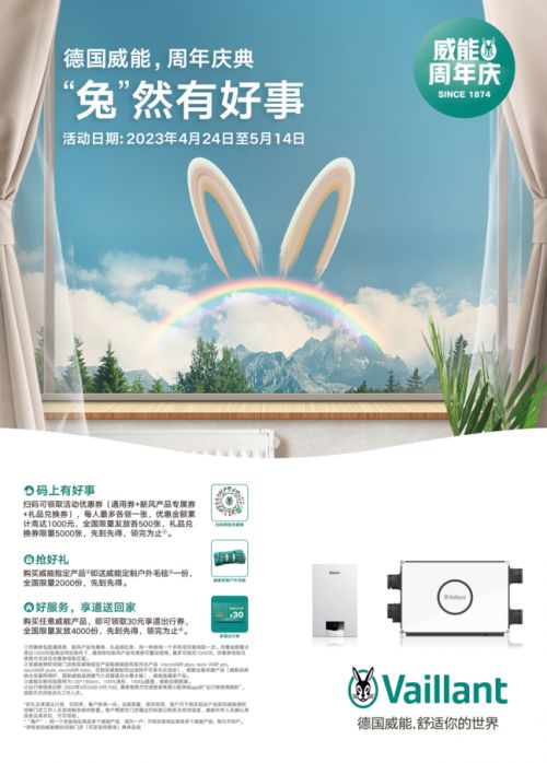作为一个以技术为核心,服务为宗旨的百年品牌,威能一直以出色的硬实力获得大众认可,近年来威能打造更为丰富的品牌形像,通过“自在·生活·家”的品牌理念,以及周到服务融入用户的生活日常。2022年威能结合品牌与复活节的历史渊源,开启“威能复活节”元年,今年恰逢中国兔年,又是充满生机与希望的春季,威能赋予2023“威能复活节”周年庆的深层意义,以“兔”然有好事为主题,展开为期近一个月的周年庆活动。