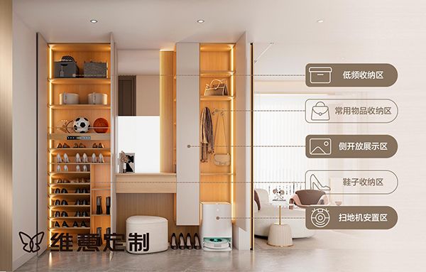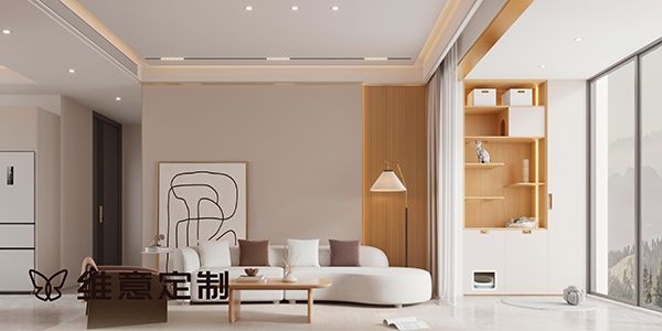 整体空间配色年轻时尚,营造满满的回家仪式感,悬挂吊柜整体轻盈通透,侧开放柜兼具开放展示。