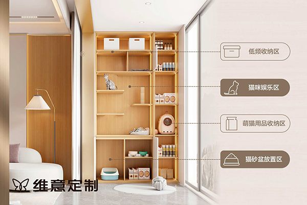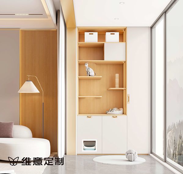 萌宠阳台搭配多功能组合收纳柜,实用又美观,多层隔板,提供足够的活动空间自如玩耍跳跃。