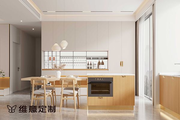 厨房打通餐厅,让用餐真正成为家庭最温馨时刻,餐厨共用岛台,促进一家人的交流、陪伴与互动。