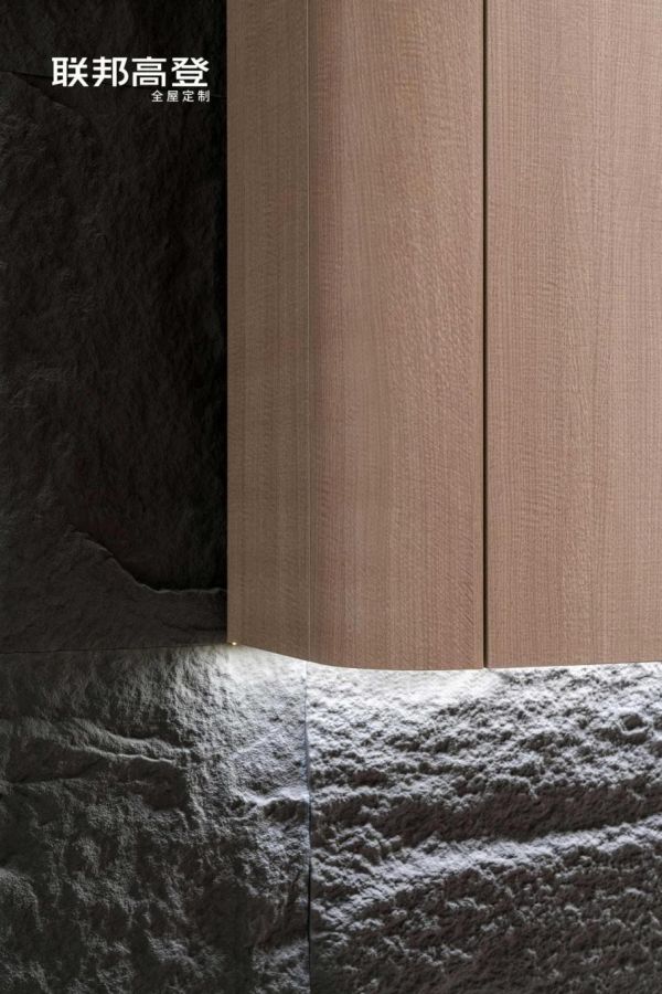 通过超感钢压工艺实现贴近木皮真实肌理效果,近距离品鉴奇妙无穷的木纹肌理,方寸之间皆是雅韵;辅以柜体内嵌灯带晕染空间,让视觉呈现更显氛围格调,浅浅勾勒出浪漫光影世界。