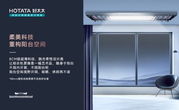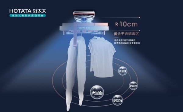 传统晾晒存在诸多痛点,如晾晒不方便、承重不强、遇阴雨天衣服不易干,以及发霉、干衣效率低、杀菌不彻底等……而这些问题好太太亚运流光系列智能晾衣机都能有效解决,作为亚运系列新品晾衣机,它具有颜值高、超薄机、LED照明、易安装、承重大、整机折叠收拢等特点。
