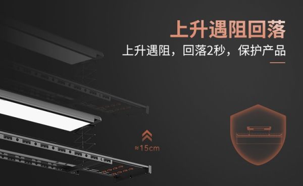 八大人性化智能便捷:自由调光、渐明渐暗、隐藏式无尘晾杆、高度自定义、轻抬上升遇阻即停、晾晒量加大、APP一站式管理、降噪科技。人性化功能有效降低了人群的使用难度,提高使用舒适度,增加家居幸福感。
