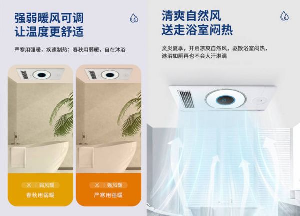其次,卡帕士浴霸沐月02拥有贴心的温度调节功能。它提供两档取暖设置、送风设置,可以根据不同的季节的气候选择调节。无论是在严寒的冬季,还是炙热的夏季,都可以根据个人喜好自由选择,确保沐浴时的舒适度。