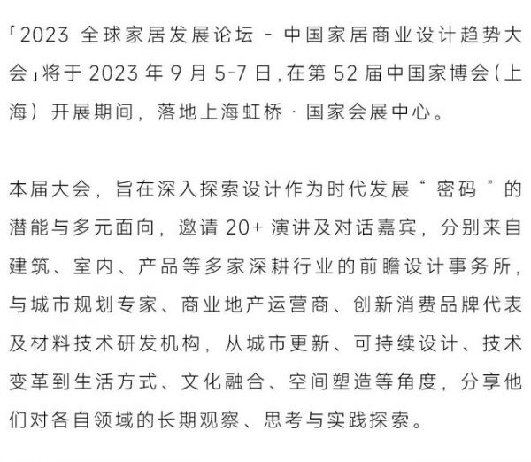 「2023中国家居商业设计趋势大会」议程公布 | 大咖云集,9月5日启幕!