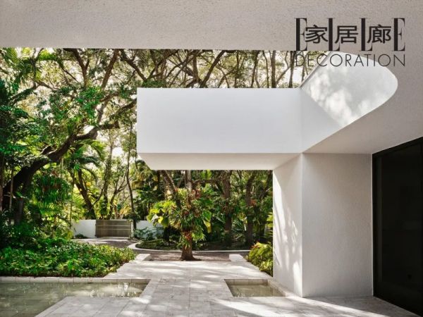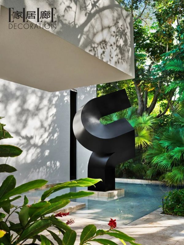 这座1980年的迈阿密住宅正门最初由建筑师Miguel Rodrigo Mazuré设计,后经现任住户Richard和Susan Arregui夫妇翻新。门口的Clement Meadmore雕塑作品由前任房主Gloria和Leonard Luria夫妇放置于此。