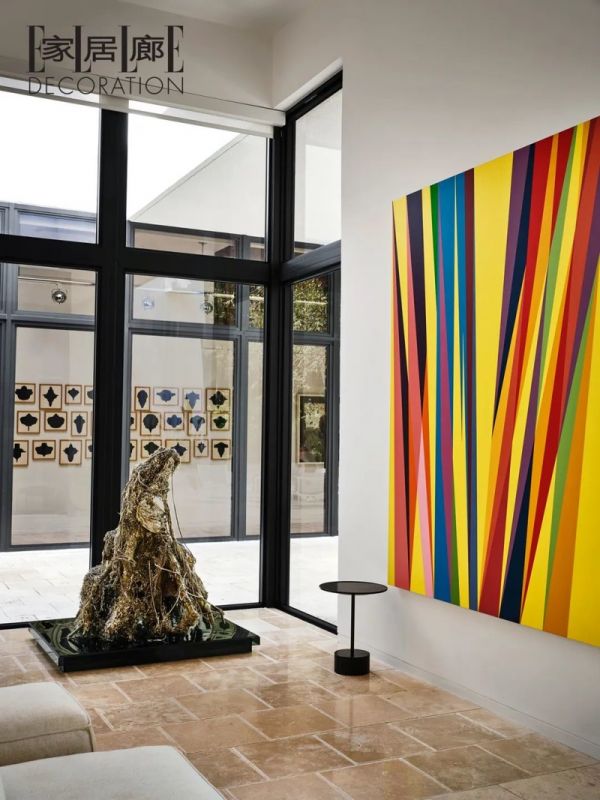 疫情时期Richard仍坚持买下这座房子,这份坚持也有Susan的功劳。他们的新家配备了一个特别设计的艺术壁橱,用于陈列他们收藏的300多件艺术品;还有13扇天窗,确保藏品享受到温和美丽的折射光线;以及三个酒吧,分别在室内、室外露台和泳池边。“我们喜欢休闲娱乐,而这座房子就是为艺术和娱乐而建的。”Susan说。
