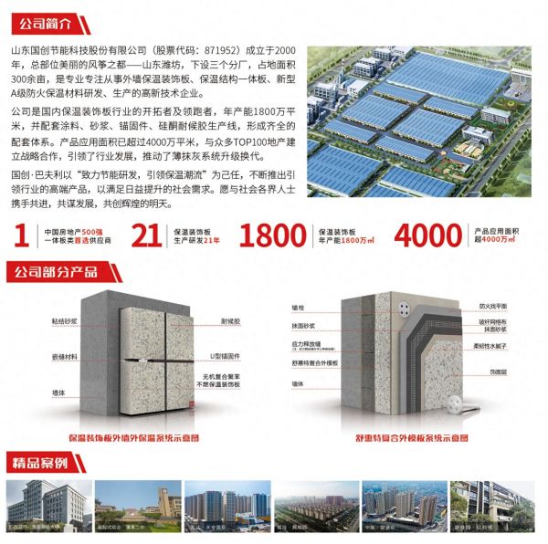 绿色低碳、节能环保,这是近年来我国国民经济发展遵循的核心原则。在绿色转型发展趋势下,“建筑节能”概念越发深入人心。山东国创节能科技股份有限公司(简称“国创·巴夫利”,股票代码871952)从一面墙开始,通过高效节能的外墙外保温系统为实现双碳目标贡献力量。