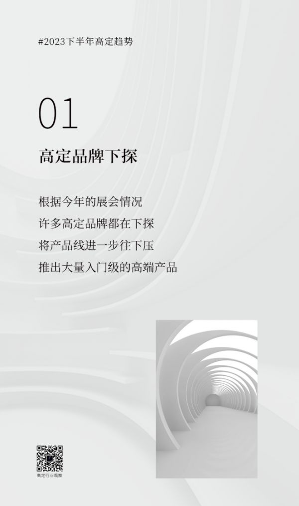 根据今年3月的设计周和上海建博会,以及7月的建博会的情况来看,许多高定品牌都在下探,将很多产品线进一步往下压,开始推出大量入门级的高端产品。