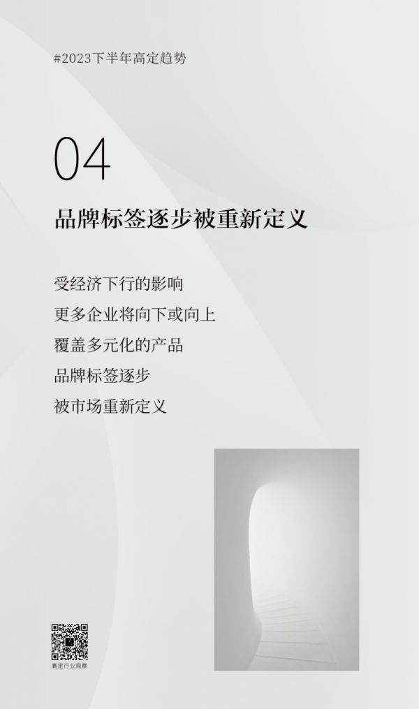 品牌过去给自己贴的标签,可能会随着今年下半年乃至后面的经济状况,发生根本性的转变。同时,过去标签特别明显的企业,都会向下或向上覆盖多元化的产品,也就是品牌的标签会逐步被市场重新定义。