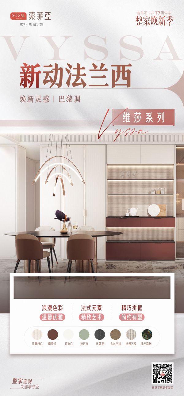 源自法国的定制家居品牌——“SOGAL索菲亚”,拥有42年定制历史,秉承法式时尚风格和理念,推出了维莎系列、缇娅系列和图尔系列产品,为人们营造出一种沉浸式优雅时尚生活。其中的维莎系列,汲取巴黎铁塔、法式雕花等元素,不仅仅代表了一种精致、优雅的家居风格,更象征了一种高品位的生活追求。