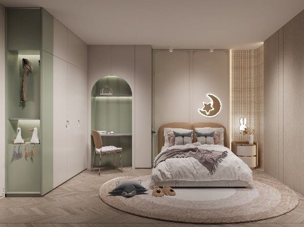 将 温 润 的 格 调 与 童 真 的 美 好 融 合 设 计,通 过 色 彩 、线 条 的 重 新 构 造, 以 及 喷 粉 的 细 腻 触 感,打 造 健 康 舒 适 、温 柔 舒 适 的 儿 童 空 间。