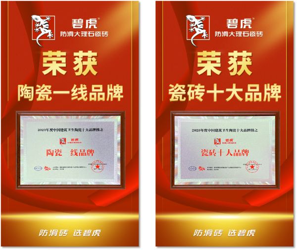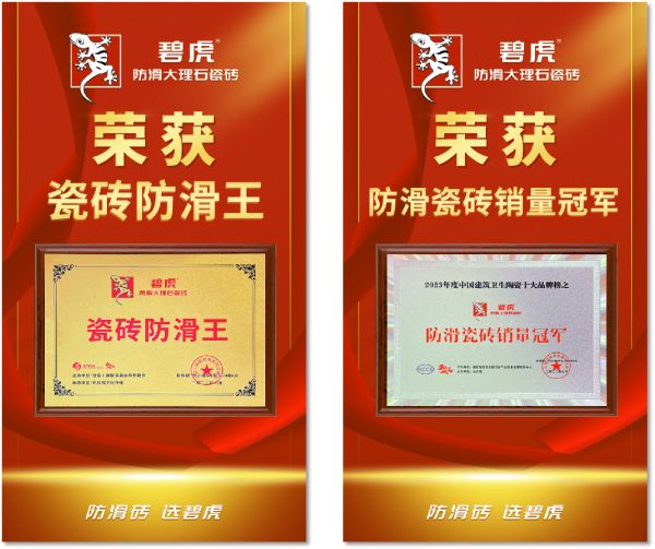 碧虎防滑大理石瓷砖,荣获中国瓷砖防滑王、防滑瓷砖销量冠军、陶瓷一线品牌、瓷砖十大品牌、新华社《了不起的国货》荣誉授牌,防滑单品冠军品牌等国家级奖项,行业共同见证,品牌实力卓越。