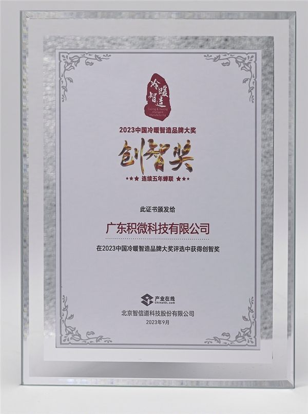 实力见证!积微GCHV荣膺“2023中国冷暖智造·创智奖”