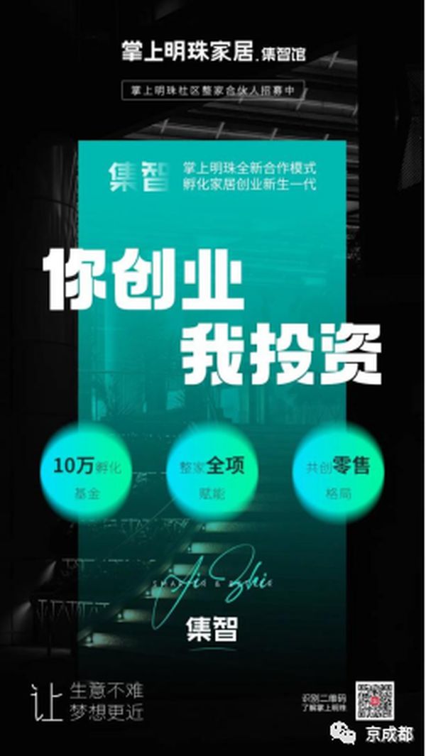 当下这个时代,给与年青人无限创业空间的同时,也带来了更多的压力。当下青年创业者普遍面临的难题-资金、风险、能力。基于此,掌上明珠家居在推出集智店态的同时,充分考量了创业环境,为集智共创者带来创业支撑。