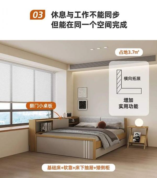 2⃣️次卧,面积稍微小,定制柜的价格略微高,又想有收纳的地方又想节约预算。☑️魔方盒子实木床系列就可以解决燃眉之急,一床组合打造多功能房。