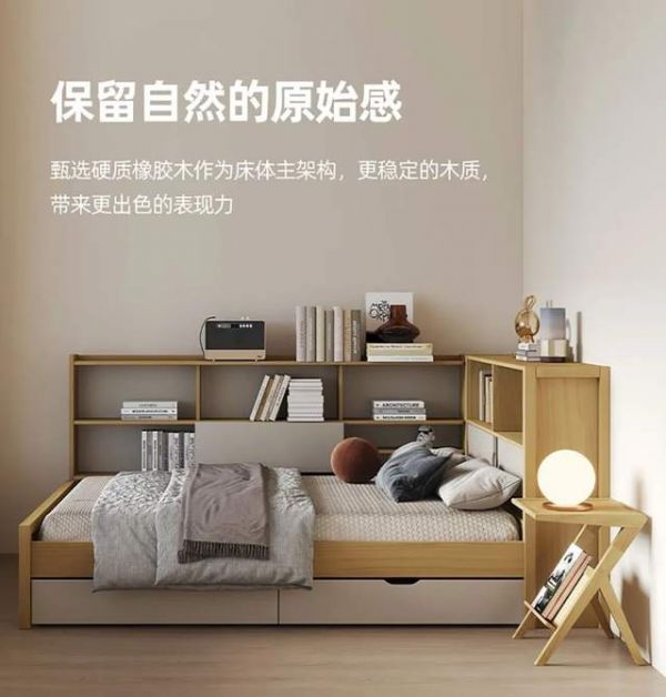 耐用耐看全实木框架,扎实稳固,承重力强,平衡受力不塌陷。温润原木风百搭空间,对小户型的小伙伴们很友好,收纳空间很好,解决储物问题。