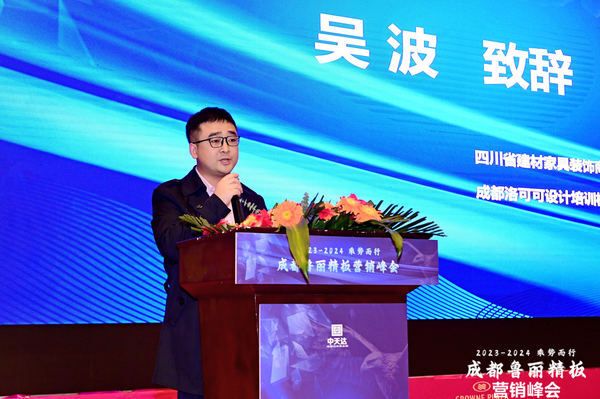 随后,四川省建材家具装饰商会秘书长吴波发言。发言中,吴波肯定了成都中天达木业在过去取得的各项成绩,对成都中天达木业成功举办本次活动表示热烈的祝贺。吴波表示,四川省建材家具装饰商会将继续起到企业与社会各界的桥梁纽带作用,为企业的发展做好一切的服务工作,引领企业走向更高的辉煌。