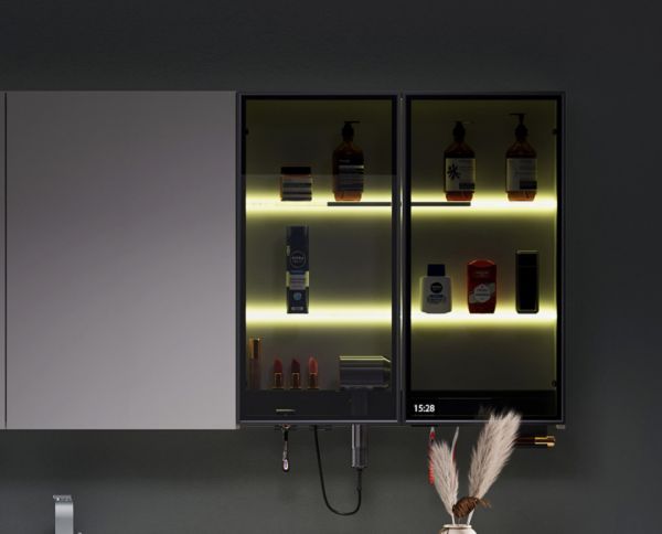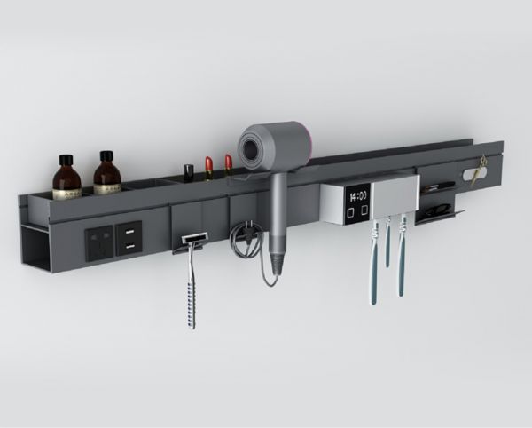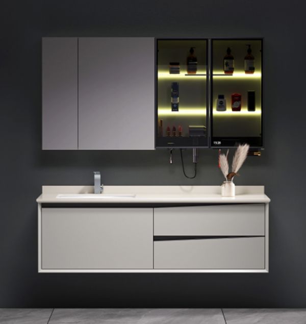 除了优雅的外观,云韵系列更以其多功能收纳设计彰显实用性。镜箱部分设计巧妙,右侧柜专为电吹风支架、牙刷杀菌器以及化妆品等日常用品而设,提供了方便的储存空间。而左侧镜箱背板则精心添加了美妆收纳模块,细节之处尽显用心。每一寸空间都被精心利用,让物品井然有序,让整个空间更富有层次感。