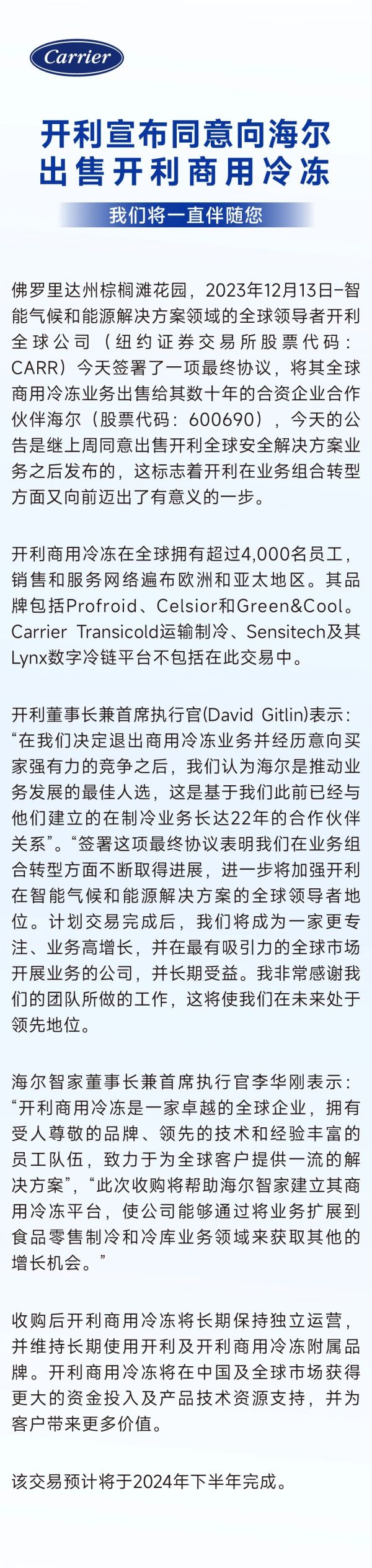 家电快讯|重回巅峰丨开利将提前完成收购东芝开利