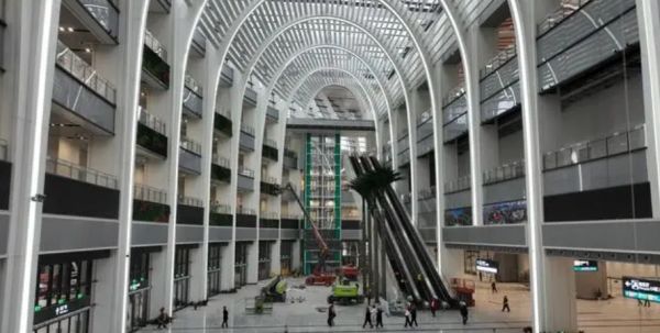 不仅如此,白云站也是全国首个在铁路正上方上盖开发的站房。为了从传统的站房雨棚区域转化为凌空的商业建筑,中铁建工集团项目团队在广州白云站的建设中,采用铁路上盖开发“造地”技术。此次“造地”面积约为6.8万平方米,是由276根直径1.65米的实心混凝钢柱支撑起的重达28万吨的上盖盖板。