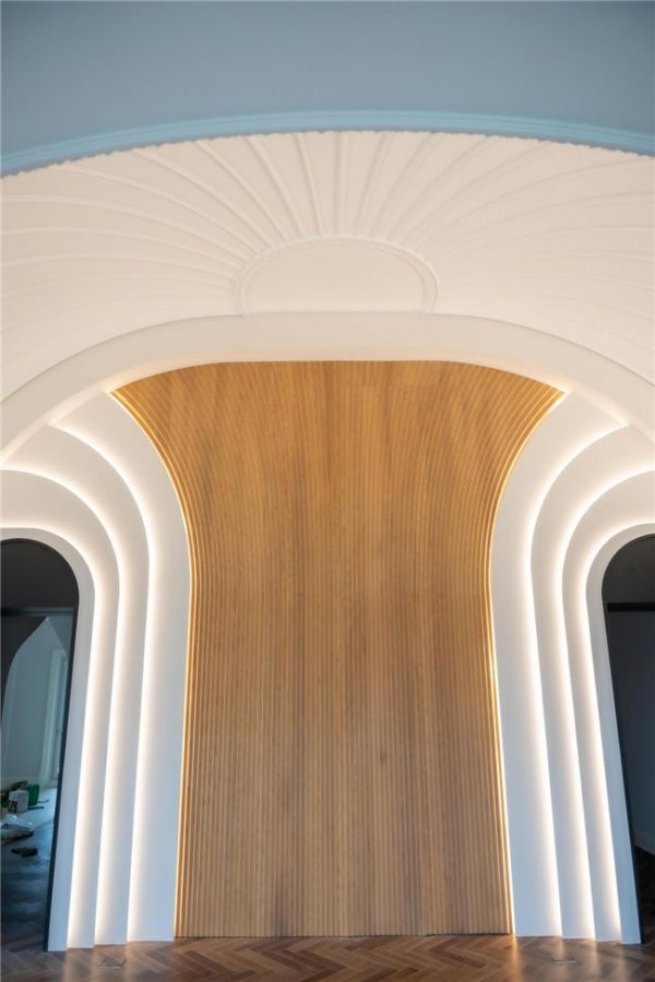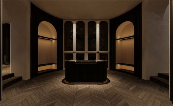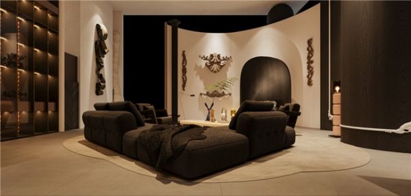 本次展馆设计中的石材不仅象征着坚固与永恒,也展示了御豪家居对材质天然纹理的深刻理解和利用。木质元素的温暖质感与石材的冷峻质地形成鲜明对比,象征着品牌工艺的温度和对家的理解。空间的每一处设计都是对“重昇”理念的深入探讨,通过空间与材质的对话,御豪家居诠释了一种高品质生活方式的追求,以及对家居美学的不断探索和提升。