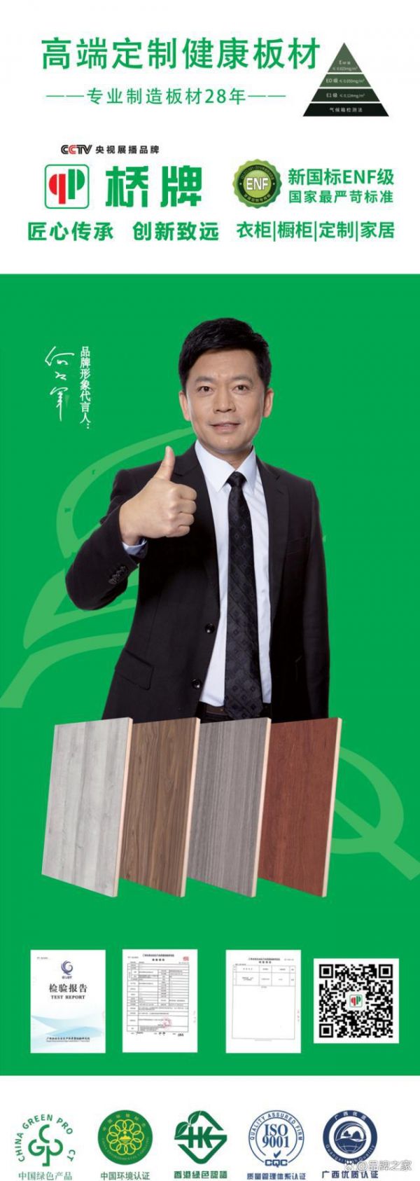 作为1995年创立的品牌,桥牌板材历经二十余载,厚积薄发,如今已发展为行业内有口皆碑的知名大品牌。不仅卓越的产品质量、强大的科技实力和创新实力还有完善的服务体系。