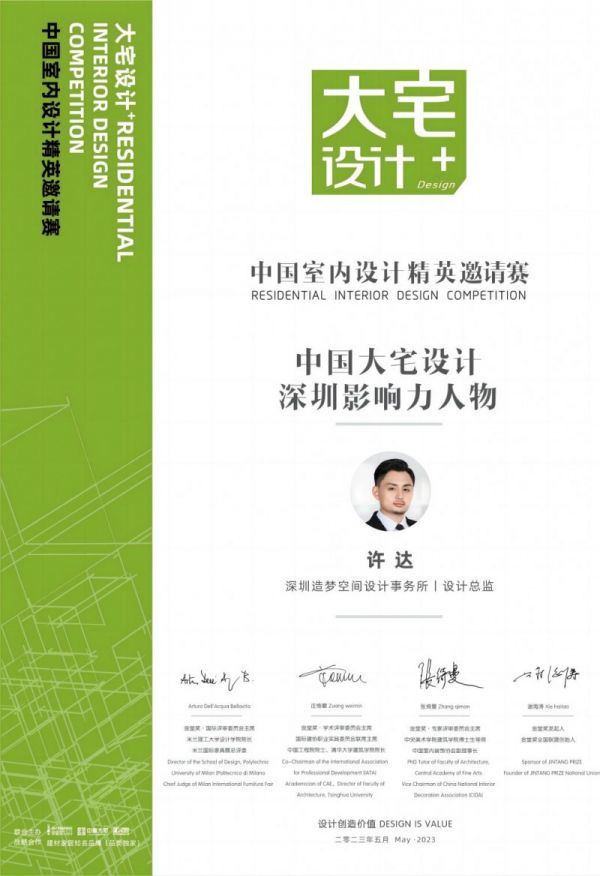 作为中国大宅设计城市杰出代表:深圳造梦空间设计事务所 设计总监--许达 荣获此殊荣!