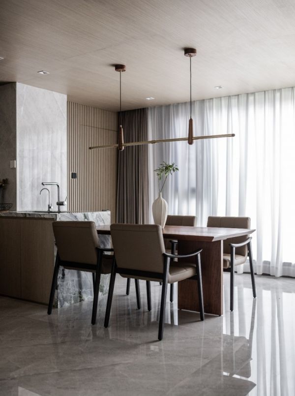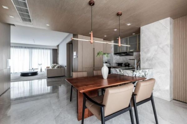 屋主夫妻的要求很明确——喜欢干净、简约、温馨的居家风格,并且强调空间的功能性与舒适性并重.在居住需求上业主不刻意追求房间数量,但在意空间的尺度和品质.同时,女主人对餐厨孔家颇为看重,希望为平淡的柴米油盐生活营造出不同的情趣与格调