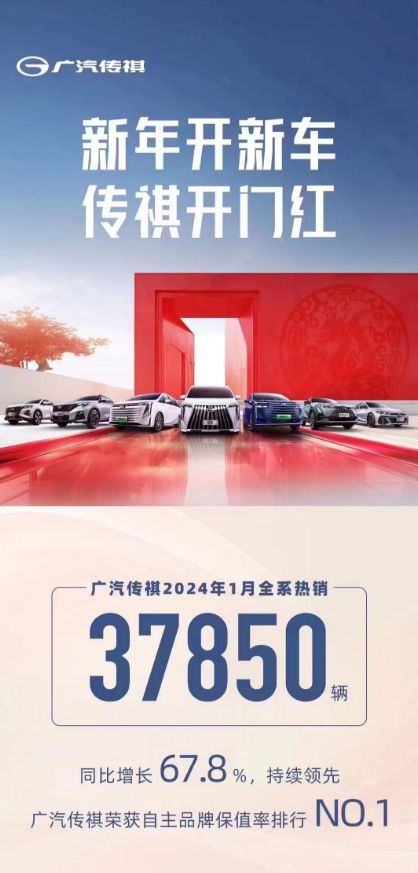 龙年首月,中国车市喜迎“开门红”,这主要得益于各主流车企的集中发力。其中,广汽传祺开局就惊艳,不仅荣获了《2023年度中国汽车保值率报告》自主品牌保值率冠军,还再次凭借传祺MPV家族和传祺新能源系列、影系列车型的强势助力,全系热销37850辆,同比增长67.8%,涨势喜人,写好2024第一章。