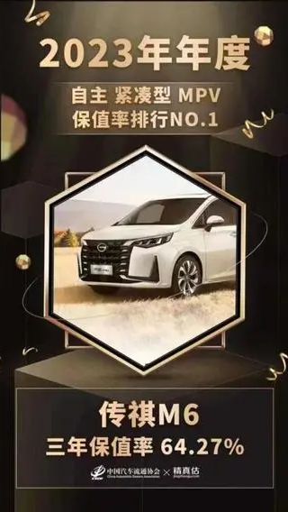 自上市至今,传祺M6已经收获了超过22万位车主的喜爱,累计30个月夺得10-15万级MPV市场销量第一名,是当之无愧的销冠;其保值率也是常年位居10-15万级自主MPV市场首位,尤其在中国汽车流通协会发布的《2023年度中国汽车保值率报告》中,传祺M6以64.27%的3年高保值率位居10-15万级MPV第一,这些实打实的数据都证明了传祺M6销量和保值率齐登顶的“榜一大哥”地位,这才是真正的价值所在。