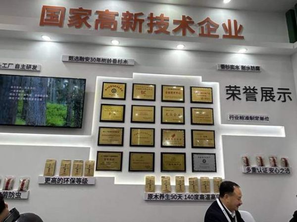 走进壮象板材的展厅,首先映入眼帘的是一系列精美的产品展示。壮象香杉醇香板以其独特的纹理、环保的材质和优质的工艺,吸引了众多观众驻足观赏。每一块板材都仿佛是大自然的馈赠,散发出淡淡的香杉气息,让人仿佛置身于森林之中,感受大自然的清新与宁静。