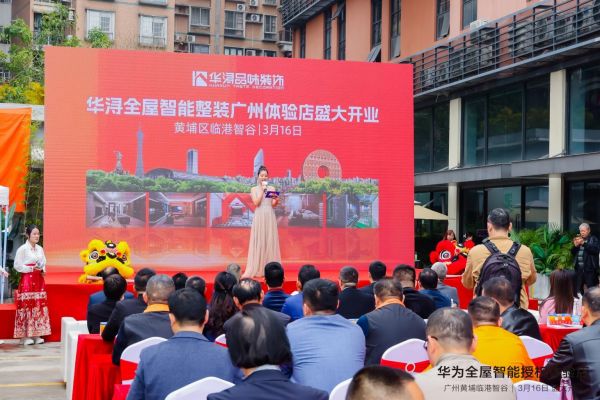广州市建筑装饰行业协会、黄埔区黄埔街道办事处、华浔品味装饰集团、华为终端有限公司等相关领导,以及金牌整家定制、方太电器、东鹏瓷砖、特地瓷砖、梦天木门、贝朗卫浴、九牧卫浴、日丰管业、艺邦木业、立邦涂料、秋叶原实业、普睿司曼等合作材料品牌和多家主流媒体嘉宾莅临现场祝贺,共同见证体验店的盛装起航。