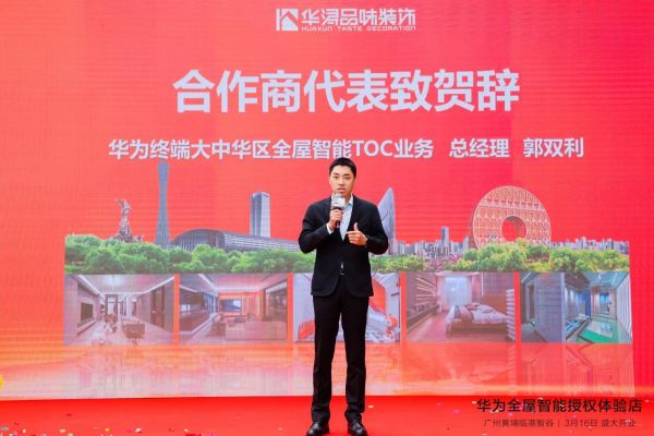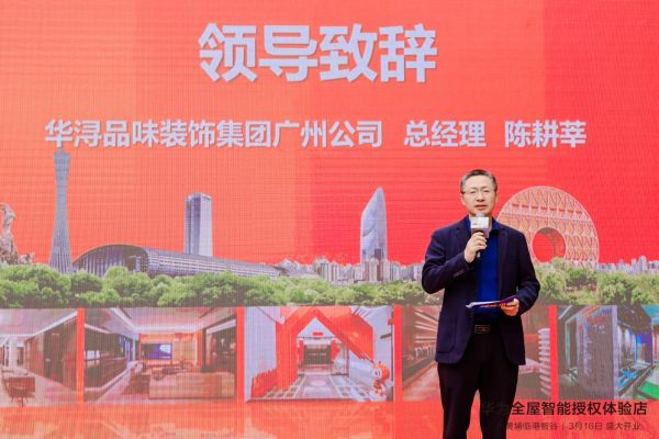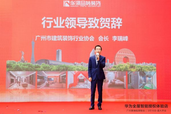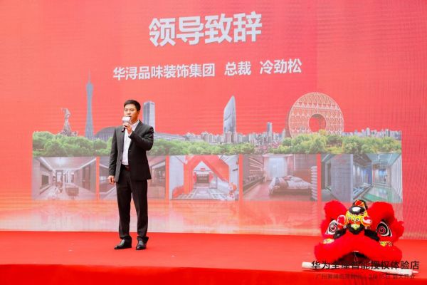 华浔品味装饰集团总裁冷劲松在会上致辞时表示,广州体验店的盛大开业,是华浔品味装饰集团积极整合资源,加快战略转型,不遗余力强化供应链体系建设和提升全案设计交付能力的重要举措,是华浔品味装饰深耕广州、专注装修装饰26年,为客户带来更多更好服务体验的里程碑时刻。华浔品味装饰集团以广州公司为战略落地单位,携手华为全屋智能、金牌整家定制等优秀家居建材上下游企业,共谋发展,为美丽广州共同奉献更好、更美的多样化产品体验。