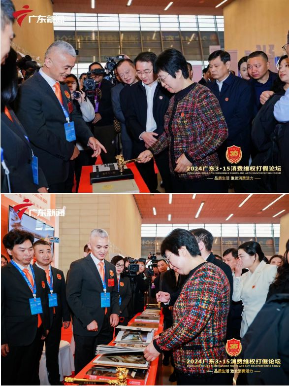 国家市场监督管理总局领导、广东省市场监督管理局领导等在巡查华浔品牌展位时,对华浔三品文化(品质、品味、品格)赞誉有加,还拿起华浔质量锤和华浔案例作品集仔细鉴赏