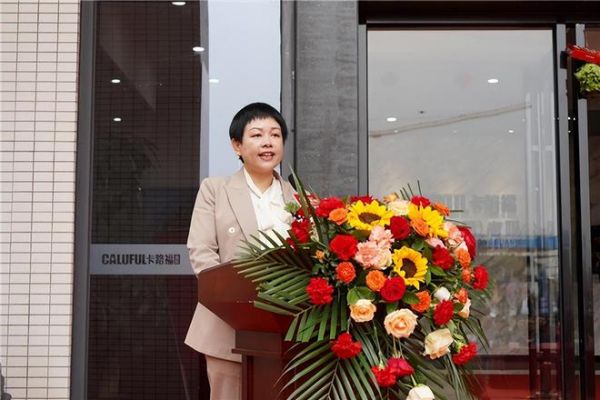 开业庆典精彩纷呈,活动流程紧凑有序。活动开始,卡路福家居董事长董瑞灵发表了热情洋溢的致辞。对莅临盛典的各位领导、嘉宾及朋友表示热烈的欢迎与衷心的感谢。接着,她回顾了卡路福家居的光辉岁月,展望了新生产基地的宏伟蓝图,并表达了对未来发展的坚定信念。