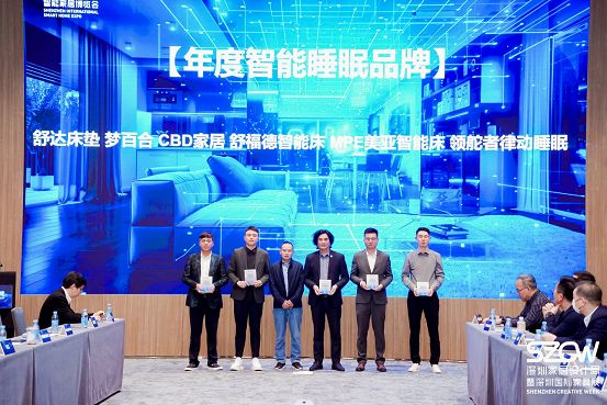 《年度智能睡眠品牌》:舒达床垫、梦百合、CBD家居、舒福德智能床、MPE美亚智能床、领舵者律动睡眠