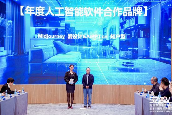 《年度人工智能软件合作品牌》:Midjourney、爱设计&AiPPT.cn、知户型