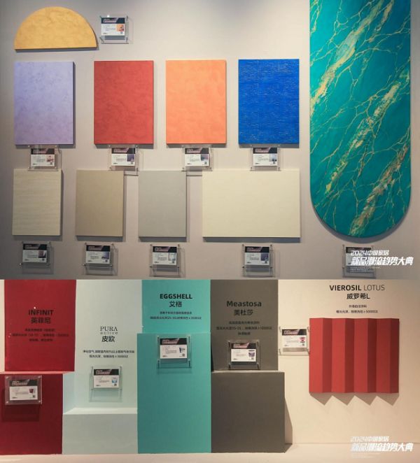 此次大典,VERYLUX威罗重点展示了Infinit英菲尼、Pura皮欧、Eggshell艾格、Maestosa美杜莎、Vierosil lotus威罗希L几款产品。这些艺术涂料产品多采用专业的滚涂、喷涂手法,以保证产品的上墙效果以及后续的长效性能,同时符合国际环保标准,不含甲醛等有害物质,具有耐磨、耐擦洗、防霉、防水等优越性能,在带来美观精致艺术墙面的同时,为消费者守护家居空间的洁净与健康。