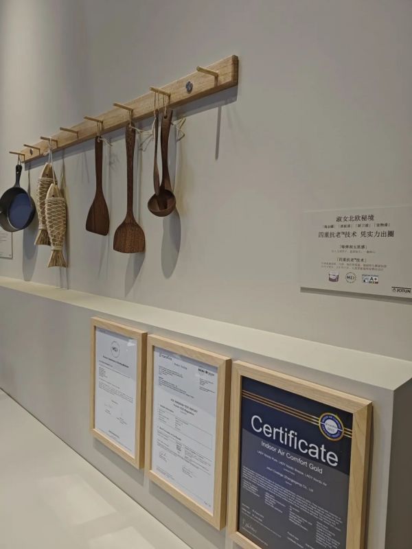 “淑女北欧秘境拥有嘭弹润玉的质感,注入四重抗老技术,抗划痕、抗霉菌、抗细纹、抗污渍。同时,这款产品已通过法国A+认证、芬兰M1认证,让家庭环境更加环保安心。”