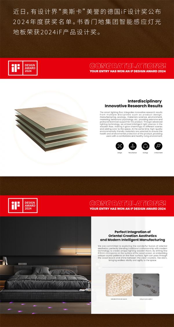 书香门地:智能感应灯光地板斩获2024年德国iF设计奖