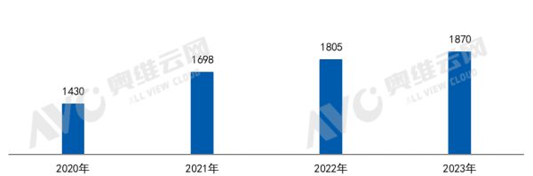 奥维云网(AVC)推总数据显示,2023年中国家用智能门锁全渠道零售量规模达到1870万套,同比增长3.6%。