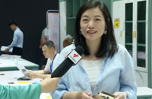 薏佳办公家具董事长李本刚告诉记者,他们公司立足广东,面向全球,每年都会推出不同潮流的新型的系列产品,此次携带了今年最新宝石绿办公家具,这个系列有10多款,参展期间受到海内外不同人群的青睐,尤其是年轻人,还情不自禁自己去体验一下。